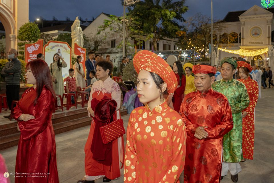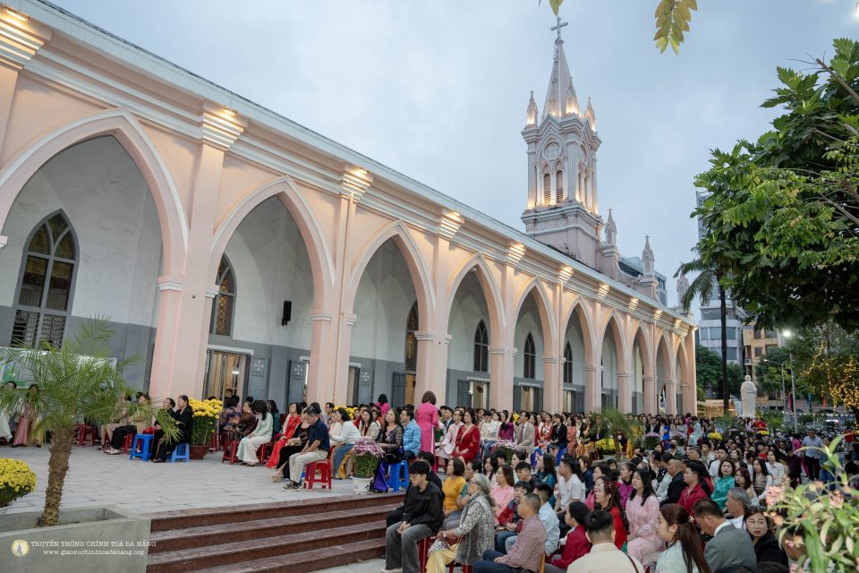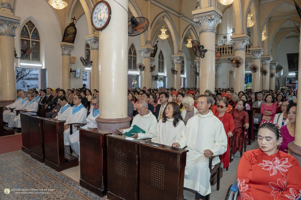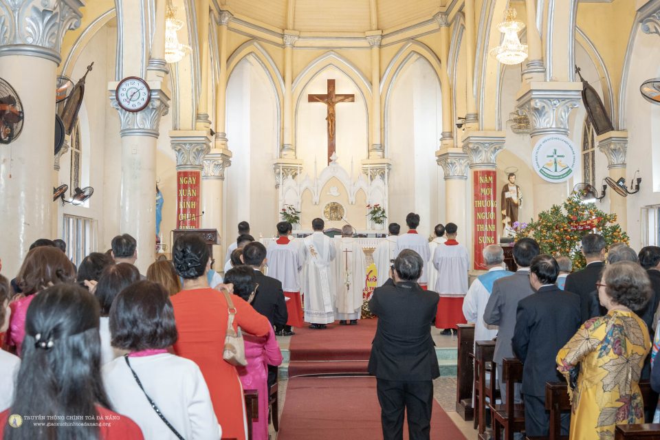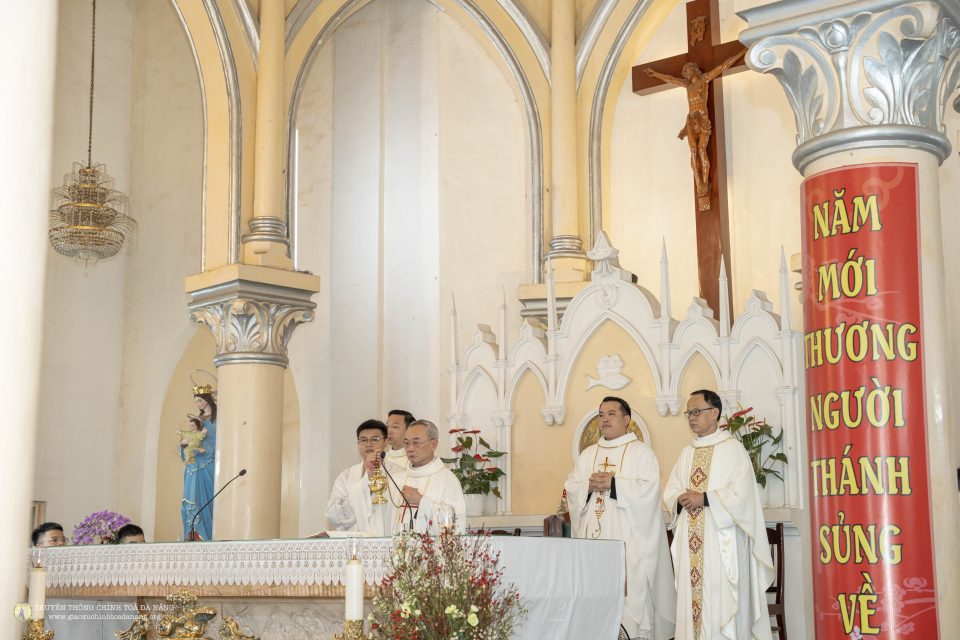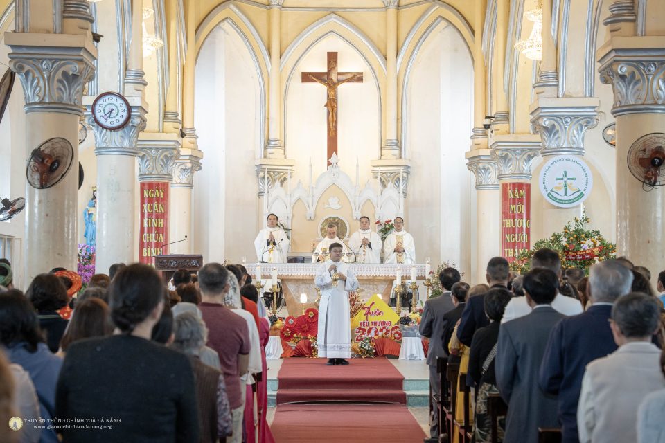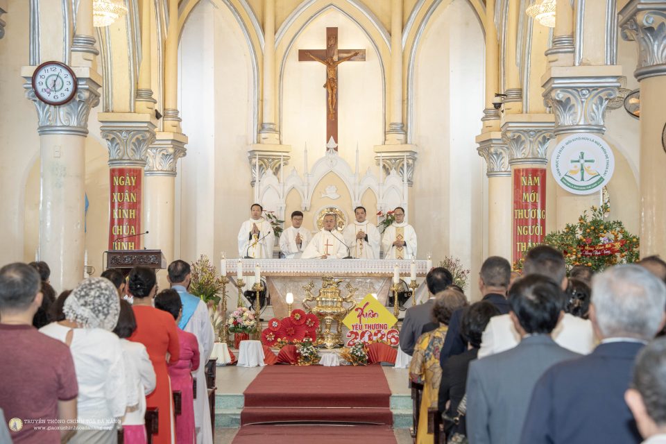 Ngay từ sớm, đông đảo giáo dân đã quy tụ về ngôi thánh đường thân quen để dâng lời tạ ơn Thiên Chúa vì muôn ơn lành trong năm cũ và xin Ngài chúc lành cho năm mới bình an, hạnh phúc. Không gian nhà thờ được trang hoàng hài hòa giữa nét rực rỡ của mùa xuân và vẻ trang nghiêm của phụng vụ, tạo nên bầu khí vừa ấm áp vừa linh thiêng.