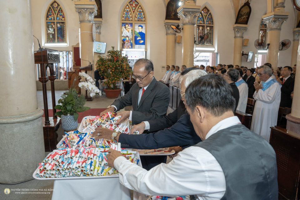 Đặc biệt, vào cuối thánh lễ, Cha Quản xứ Bonaventura Mai Thái đã long trọng làm phép những câu Lời Chúa được chuẩn bị sẵn để cộng đoàn “hái lộc Lời Chúa” đầu năm. Từng người, từng gia đình tiến lên đón nhận một câu Kinh Thánh như món quà thiêng liêng Chúa gửi trao cho năm mới. Những tấm lộc nhỏ bé nhưng chứa đựng niềm hy vọng lớn lao, trở thành kim chỉ nam nâng đỡ và soi sáng hành trình đức tin trong suốt năm. Nghi thức hái lộc Lời Chúa khép lại thánh lễ trong niềm vui rộn ràng, mở ra một năm mới tràn đầy ân sủng và bình an.