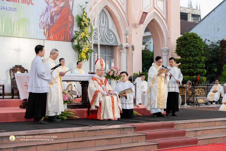 Trong tâm tình tạ ơn và mừng lễ Sinh nhật Thánh Gioan Baotixita, lúc 5 giờ sáng ngày 24/6/2025, tại tiền đường Nhà thờ Chính Tòa – Giáo phận Đà Nẵng, Đức Tổng Giám mục (TGM) Giuse Đặng Đức Ngân – Giám quản Tông Tòa Giáo phận – đã chủ sự Thánh lễ truyền chức Linh mục cho 6 Phó tế: